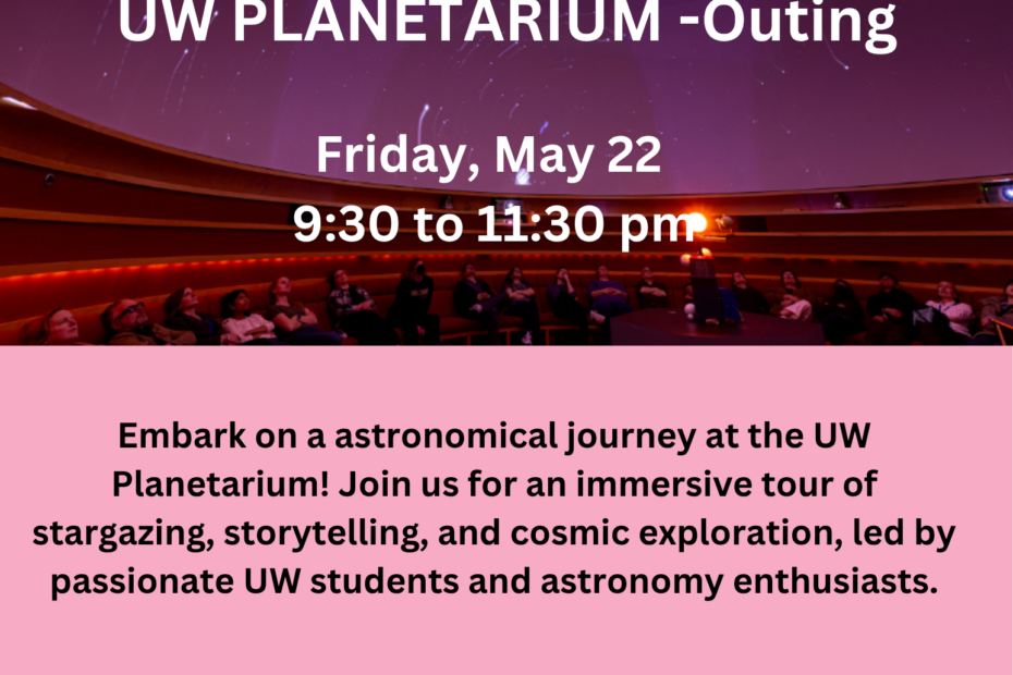 Embark on a astronomical journey at the UW Planetarium! Join us for an immersive tour of stargazing, storytelling, and cosmic exploration, led by passionate UW students… Read More »UW Planetarium Outing, May 27, 2026