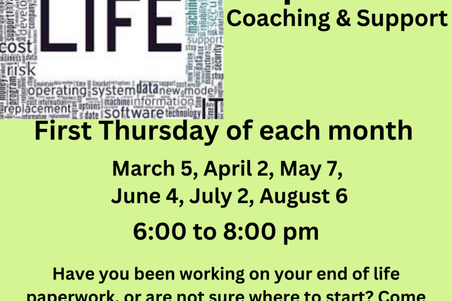 Looking for an opportunity to complete your end of life paperwork in community? Come with your questions and goals, and we will work on them… Read More »End of Life Paperwork, March 5, 2026