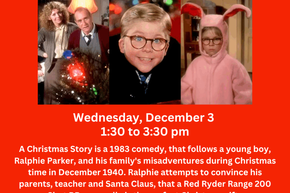 A Christmas Story is a 1983 comedy, that follows a young boy, Ralphie Parker, and his family’s misadventures during Christmas time in December 1940. Ralphie attempts… Read More »A Christmas Story, Dec. 3, 2025