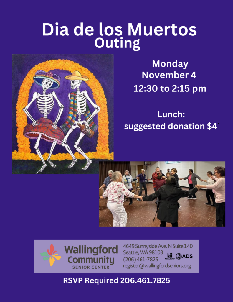 Let’s celebrate Day of the Dead with Lake City Seniors for their annual Dia de los Muertos event! There will be lunch (suggested donation of $4), live music, and dancing at this fun event! FREE, RSVPs required.