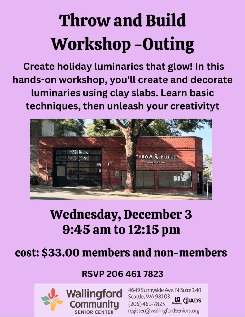 Join us for a workshop at Throw and Build Pottery Studio! Create holiday luminaries that glow! In this hands-on workshop, you’ll create and decorate luminaries using clay slabs. Learn basic techniques, then unleash your creativity—make them beautiful or adorable. Add details, carve patterns, and choose your glaze. We’ll fire your pieces, and you’ll pick up your finished creations in three weeks. RSVPs required. $33 for members and non-members.