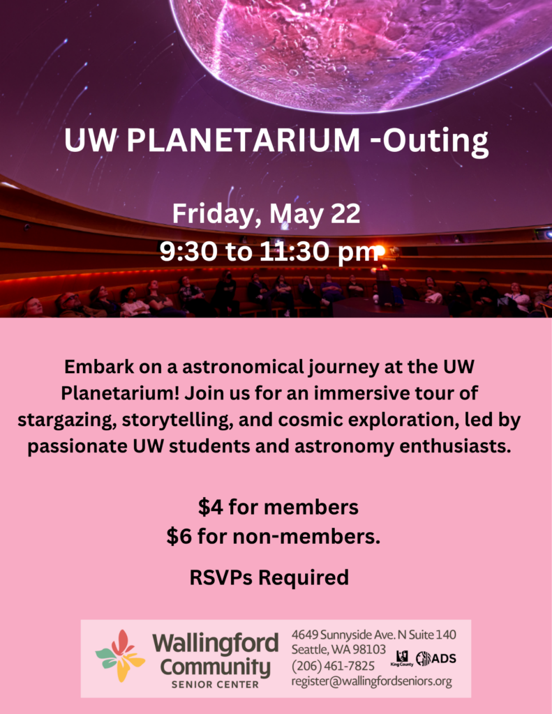 Embark on a astronomical journey at the UW Planetarium! Join us for an immersive tour of stargazing, storytelling, and cosmic exploration, led by passionate UW students and astronomy enthusiasts. RSVPs required, $4 for members, $6 for non-members